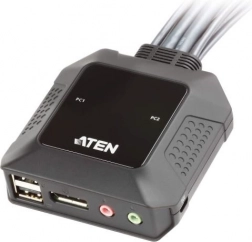 Comutatorul KVM ATEN CS22DP oferă operațiuni multiplatformă, permițând comutarea între computere cu sisteme de operare diferite. Datorită designului compact, instalarea este eficientă și spațiul este economisit, contribuind astfel la organizarea spațiului de lucru.