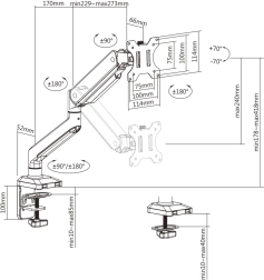 Brațul de masă pentru monitor Ergo Office este un suport universal, care permite montarea pe suprafața mesei sau printr-un orificiu. Proiectat pentru monitoare de dimensiuni de la 17 la 32 de inci cu o greutate maximă de 10 kg. Sistemul ER-447 garantează un mediu de lucru confortabil datorită posibilității de ajustare a unghiului, rotației și înălțimii. Susține standardul VESA: 75x75 și 100x100 mm, ceea ce asigură compatibilitatea cu majoritatea monitoarelor.