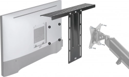 Poliță practică, care se conectează direct la monitor sau prin montare compatibilă cu standardul VESA 100x100 mm. Oferă flexibilitate în plasarea precisă a componentelor datorită reglajului pe înălțime și posibilității de montare a poliței în diferite direcții pentru nevoi individuale.