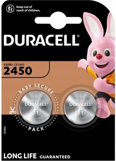 Set care conține două baterii de tip monedă CR2450 cu o tensiune de 3V, ideale pentru o gamă largă de dispozitive electronice.