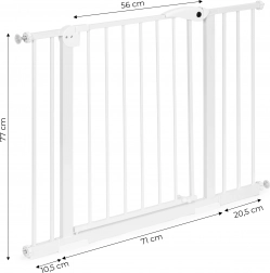Ajustați lățimea barierei cu ajutorul panourilor de extindere incluse și creați soluții ideale pentru diverse dimensiuni de uși și scări. Bariera este de asemenea excelentă pentru asigurarea spațiilor în fața prietenilor voștri patrupede.