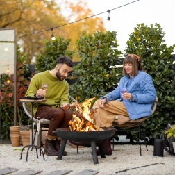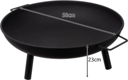 Vatră de grădină practică, cu diametrul de 60 cm, cu mânere laterale și trepied stabil, aduce căldură și atmosferă în grădina ta. Datorită finisajului rezistent la temperaturi înalte, montajului rapid fără unelte și construcției solide din fier, este ideală pentru terasă, grădină și cabană.