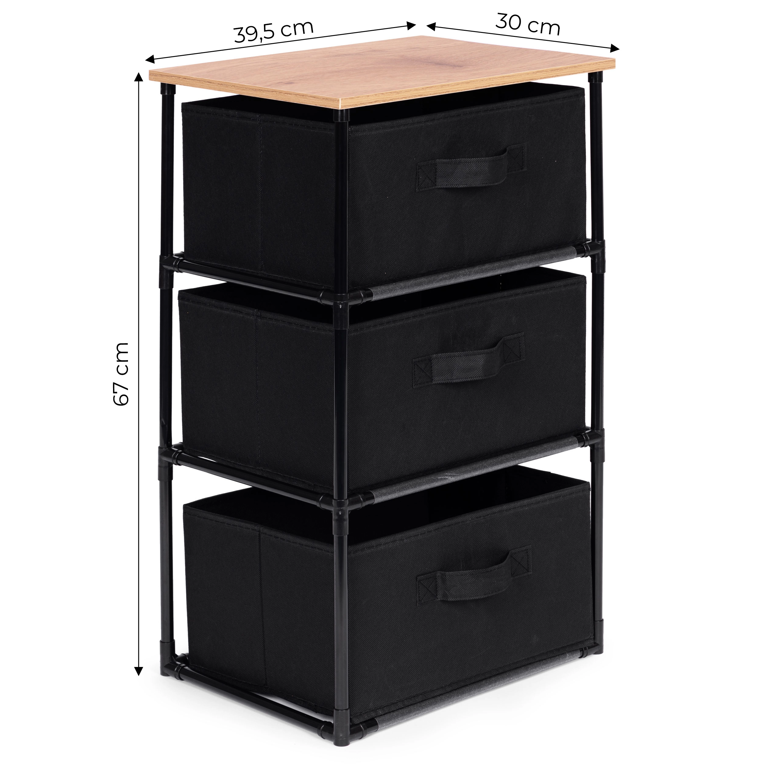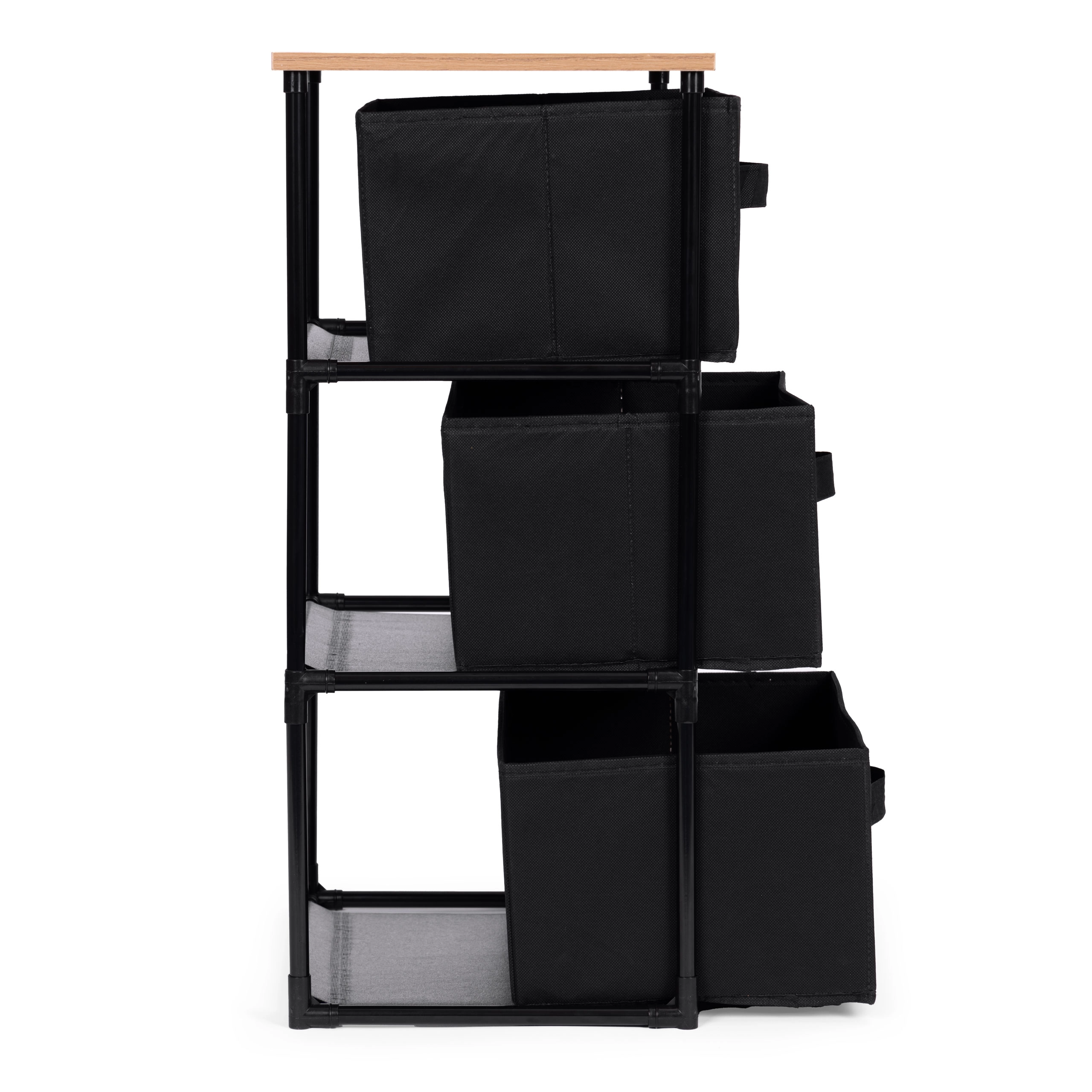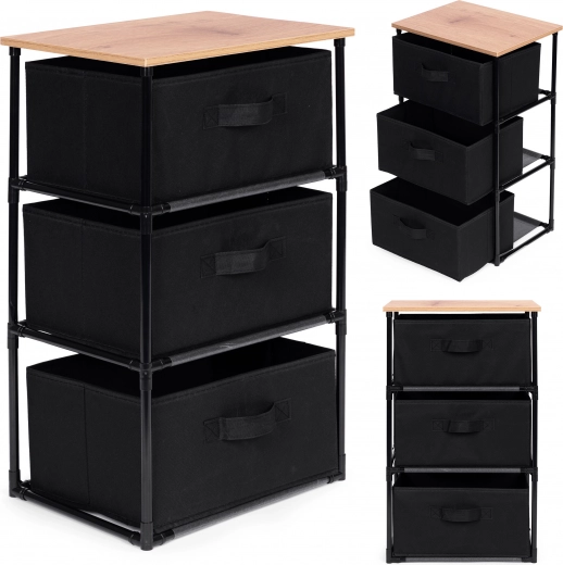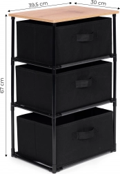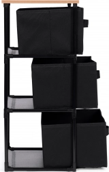 Raftul include trei coșuri detașabile din textile rezistente, potrivite pentru depozitarea hainelor, cărților, jucăriilor și altor obiecte, cu acces facil datorită mânerelelor practice.