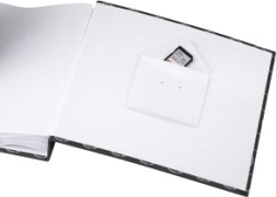 Un buzunărel practic pentru depozitarea cardului de memorie conectează amintirile digitale și pe cele tipărite într-un singur loc.