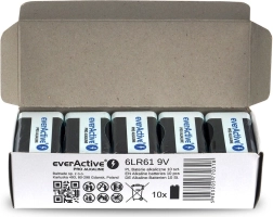 Bateriile alcaline 6LR61 (9 V) EVERACTIVE PRO ALKALINE sunt proiectate pentru fiabilitate maximă în condiții solicitante. Construcția ranforsată și etanșă minimizează riscul de scurgeri și asigură parametri stabili pe o perioadă îndelungată atât în depozitare, cât și în utilizare.
