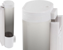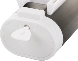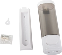 Dispenserul este livrat cu componente de montaj și o cheie pentru umplere ușoară. În plus, este echipat cu un recipient transparent care permite controlul conținutului fără a fi nevoie de deschidere.