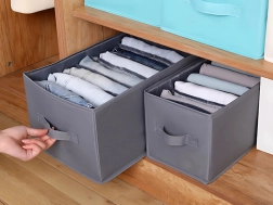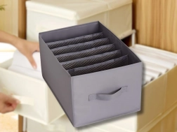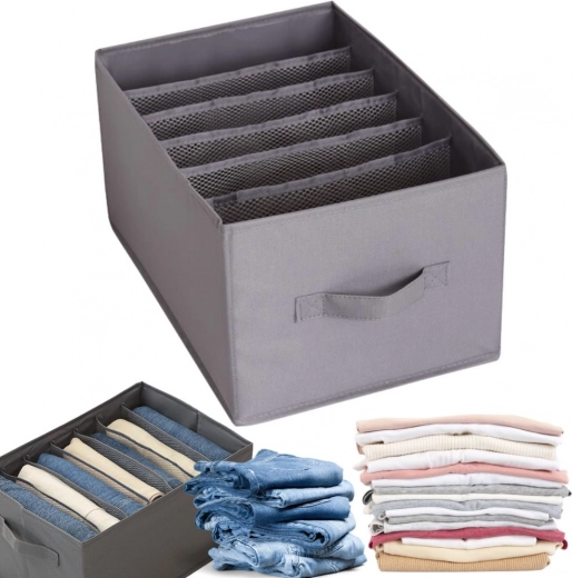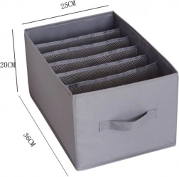 Acest organizator de haine este soluția perfectă pentru a menține ordinea în dulapurile și sertarele tale. Cu dimensiuni de 36x25x20 cm, este ideal pentru stocarea pantalonilor, cămășilor și a altor articole de îmbrăcăminte, maximizând utilizarea spațiului disponibil.
