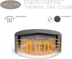 Capacul termic premium Lay‑Z‑Spa EnergySense Plus este proiectat pentru eficiență maximă și durată lungă de viață. Materialul DuraPlus în trei straturi rezistă radiațiilor UV și intemperiilor, în timp ce stratul izolator dublu îmbunătățit accelerează încălzirea apei și prelungește perioada în care jacuzziul își menține o temperatură plăcută.