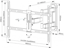 Cu o adâncime de 5,3-49 cm, este potrivit pentru ecranele care respectă cerințele VESA 100x100 până la 600x400 mm. Acest suport este ideal pentru diferite încăperi și facilitează plasarea optimă a ecranului.