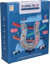 Această pistă variabilă cu rampe aduce copiilor posibilități nelimitate de curse. Datorită celor trei moduri de asamblare, micii piloți își pot crea ușor traseul după imaginație și pot începe imediat acțiunea cu cele patru mini mașini incluse.