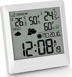 Pentru un plus de confort, include indicatorul confortului termic (3 niveluri), săgeți de trend pentru schimbările temperaturii și umidității, precum și funcții practice precum ceas cu format 12/24 h, calendar și alarmă cu funcție snooze. Iubitorii cerului nocturn vor aprecia afișarea fazelor Lunii. Ambalajul din materiale certificate FSC subliniază grija față de mediu.