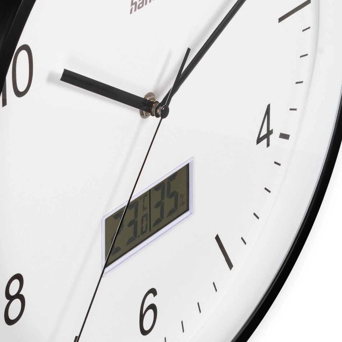 Ceasul are un cadran mare, alb, cu cifre arabe clar lizibile, facilitând citirea orei de la orice distanță. Designul atemporal se potrivește natural în orice încăpere, de la bucătărie la baie.