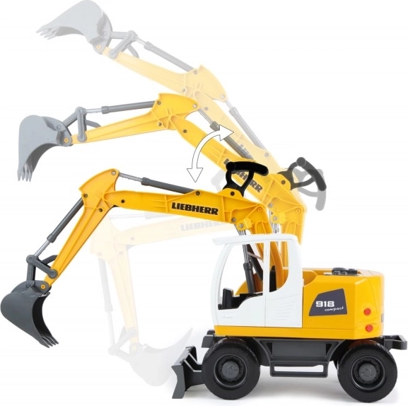Descoperiți excavatorul robust pentru copii, inspirat de utilajele reale LIEBHERR. Suprastructura rotativă 360° cu posibilitate de blocare permite mutarea fluidă a materialului, în timp ce brațul telescopic ajunge până la 55 cm. Lama de împingere și construcția durabilă din plastic de calitate garantează o durată de viață lungă și multă distracție acasă și în aer liber.