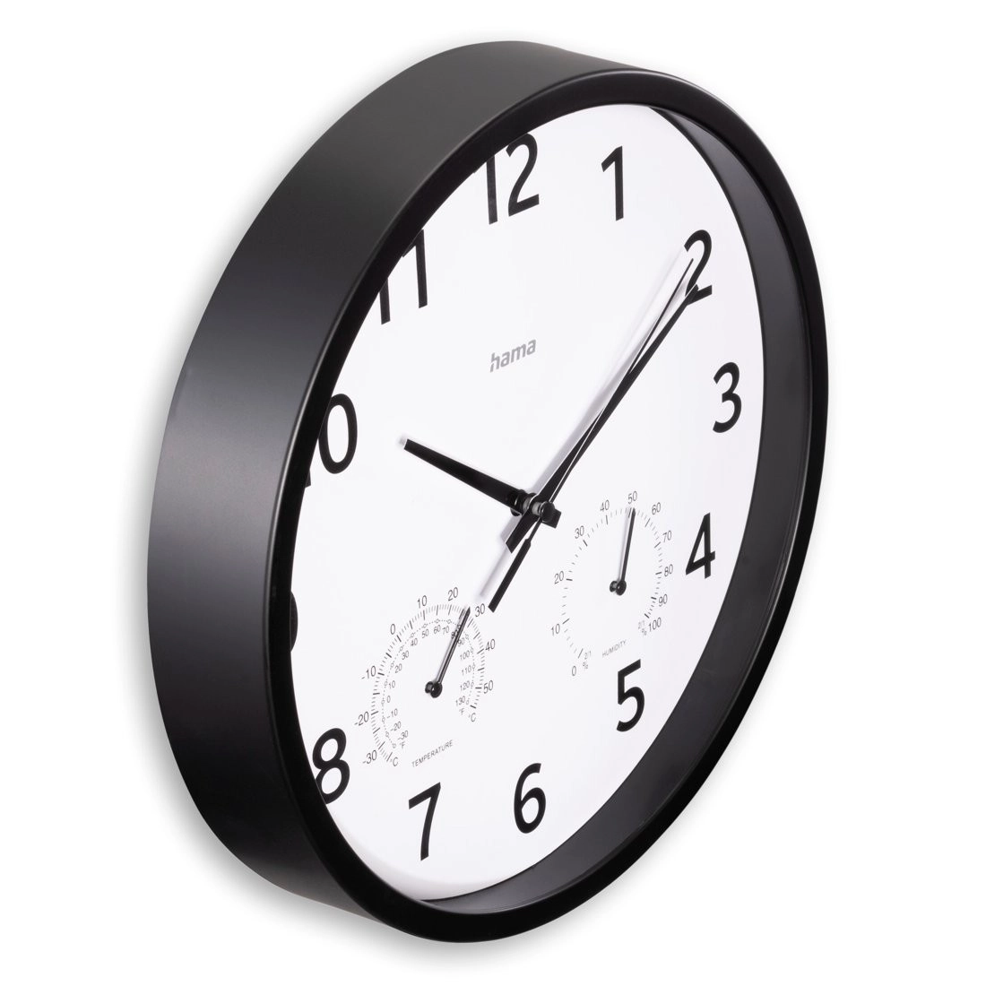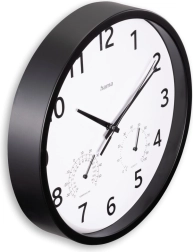 Ceasul este echipat cu termometru și higrometru integrate, care permit monitorizarea temperaturii și umidității camerei. Gama de temperatură de la -30°C la +50°C și umiditatea de la 0% la 100% fac din acest produs un accesoriu practic pentru orice mediu.