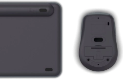 Tastatura și mouse-ul folosesc mecanisme silențioase, ideale pentru munca liniștită la birou sau acasă.