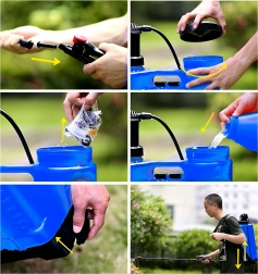 Curelele de umăr reglabile distribuie greutatea, iar trăgaciul cu blocare permite pulverizare continuă fără oboseala mâinii.