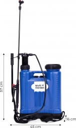 Pulverizatorul cu presiune pentru spate MULTIGARDEN 16 l este o soluție fiabilă pentru pulverizarea pesticidelor, erbicidelor și fungicidelor, pentru udare fină a plantelor și curățarea suprafețelor exterioare. Rezervorul robust din PP/PE, presiunea 2–4 bar și lancea lungă din plastic asigură aplicare precisă chiar și în zone greu accesibile. Gura largă cu sită integrată facilitează umplerea și previne înfundarea duzelor.