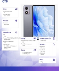 Tableta OT8 cântărește doar 515 grame și designul său subțire de 7,8 mm o face ușor de transportat și utilizat în deplasare.