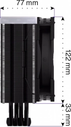 Țevi termice din cupru cu contact direct cu CPU și aripioare dense, asimetrice, care evacuează eficient căldura și îmbunătățesc compatibilitatea cu modulele de memorie.
