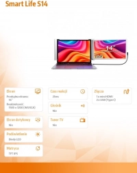 Monitoarele portabile Smart Life S14 sunt alegerea ideală pentru cei care au nevoie de un ecran suplimentar, oriunde s-ar afla. Aceste monitoare de 14 inchi sunt ușor de transportat și oferă o rezoluție impresionantă de 1920x1200 pixeli care îmbunătățește vizibilitatea și permite o experiență excelentă de vizionare.