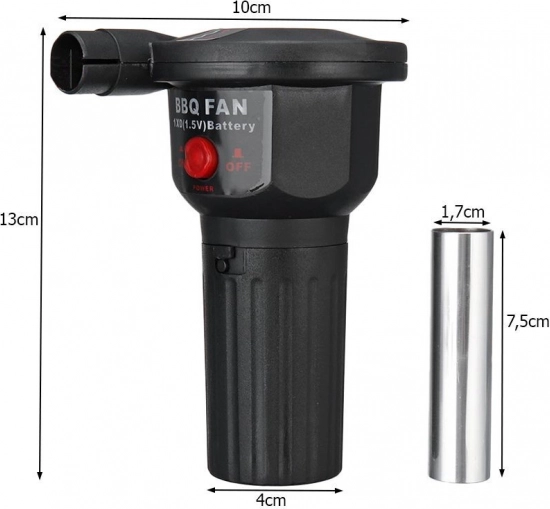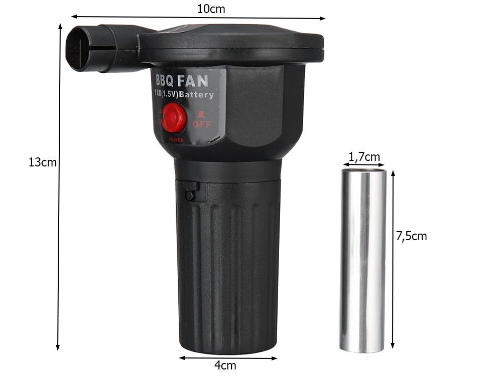 Suflantă electrică pentru grătar și șemineu. Aprindere rapidă, operare ușoară, vârf din inox, alimentare R20, dimensiuni compacte, certificare CE.