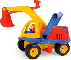 Acest excavator robust din plastic îi va bucura pe toți micii constructori. Datorită părții superioare rotative și brațului cu cupă ușor de manevrat, copiii se pot cufunda într-un joc realist de șantier. Figurina integrată de șofer adaugă valoare jocului imaginativ și sprijină dezvoltarea motricității.