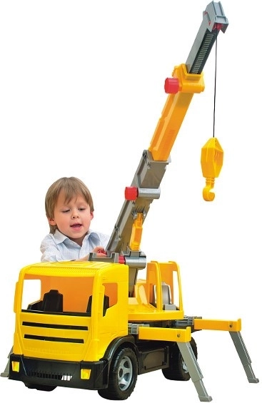 Pentru o manipulare stabilă, sunt prevăzute 4 sprijine laterale extensibile și cale pentru blocarea roților împotriva mișcării. Brațul macaralei se rotește la 270° și, după extindere, atinge lungimea totală de până la 115 cm. Construcția durabilă din plastic este ideală atât pentru camera copilului, cât și pentru grădină.