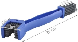 Peria universală de curățare este concepută pentru îngrijirea temeinică a lanțurilor bicicletelor și motocicletelor. Capătul cu trei fețe acoperă lanțul din mai multe direcții simultan, în timp ce celălalt capăt drept cu perii este destinat pinioanelor, șuruburilor și altor zone greu accesibile. Perii rezistenți din nailon îndepărtează eficient grăsimea și murdăria, contribuind la o funcționare mai lină și la o durată de viață mai mare a lanțului.