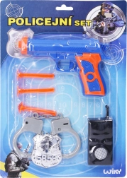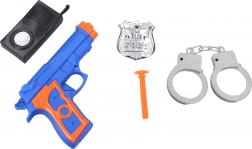 În pachet se găsește un pistol cu săgeți cu ventuză pentru tragere sigură, insignă pentru un aspect autentic de polițist, cătușe pentru „arestarea” hoților și o stație walkie-talkie pentru coordonarea intervențiilor. Setul este potrivit pentru copii de la 3 ani și susține dezvoltarea imaginației și jocul de rol.
