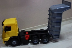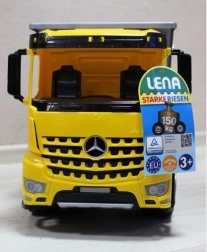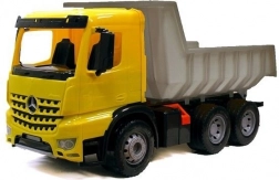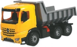 Această basculantă pentru copii Mercedes Giants Dump Truck oferă distracție incredibilă pentru cei mici. Modelul AROCS este triaxial, cu design realist, inclusiv cabină galbenă, șasiu negru și benă argintie.