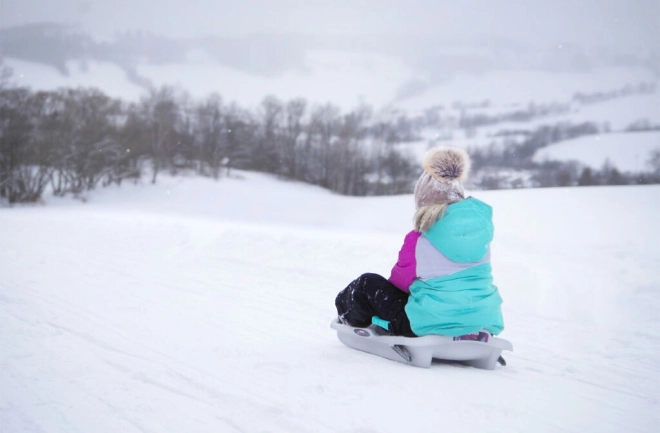 Siguranța este pe primul loc: frânele integrate asigură o încetinire fiabilă, iar zona frontală de deformare ajută la absorbția șocurilor. Datorită greutății reduse, bobul se transportă ușor, iar cu funia de tractare îl urci confortabil înapoi pe deal.