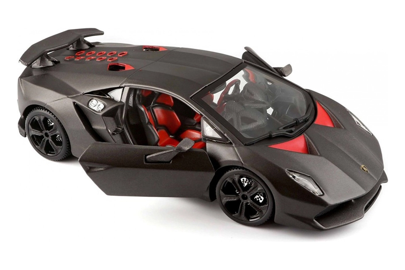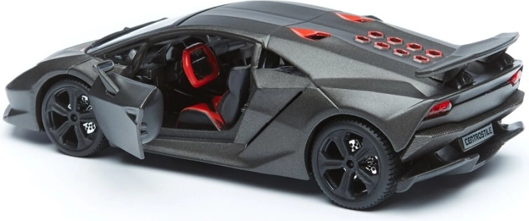 Modelul Bburago 1:24 redă fidel liniile agresive ale supersportului LAMBORGHINI Reventón în elegantul gri metalizat. Datorită ușilor tip foarfecă care se deschid și interiorului elaborat, se evidențiază ca decor stilat pentru vitrină, dar și ca jucărie rezistentă pentru micii pasionați auto.