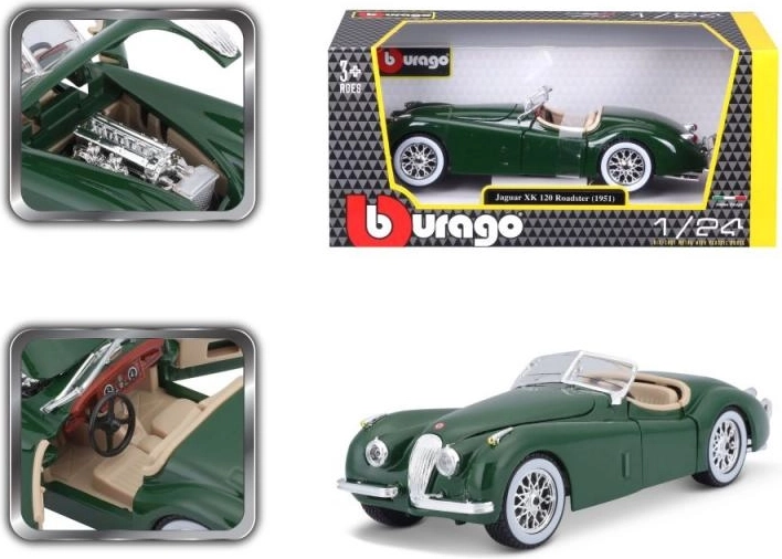 Completează-ți colecția Bburago cu alte modele grozave de mașini la scara 1:24. Model metalic din seria Bburago 1:24 Jaguar XK 120 Roadster (1951) verde