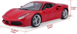 Modelul Bburago redă fidel liniile dinamice și detaliile automobilului Ferrari 488 GTB în eleganta culoare roșie. Datorită caroseriei metalice, vopselei precise și roților realiste, arată ca o mașină adevărată în miniatură. Ușile, capota și capacul motorului care se deschid îți permit să vezi interiorul elaborat și compartimentul motor.