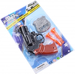 Cu acest set de poliție, copiii intră ușor în rolul unui protector al ordinii. Pistolul compact (13 cm) este ideal pentru mâinile mici, iar insigna adaugă jocului acea notă autentică de poliție. Cele două gloanțe completează efectul realist și susțin scenariile creative.