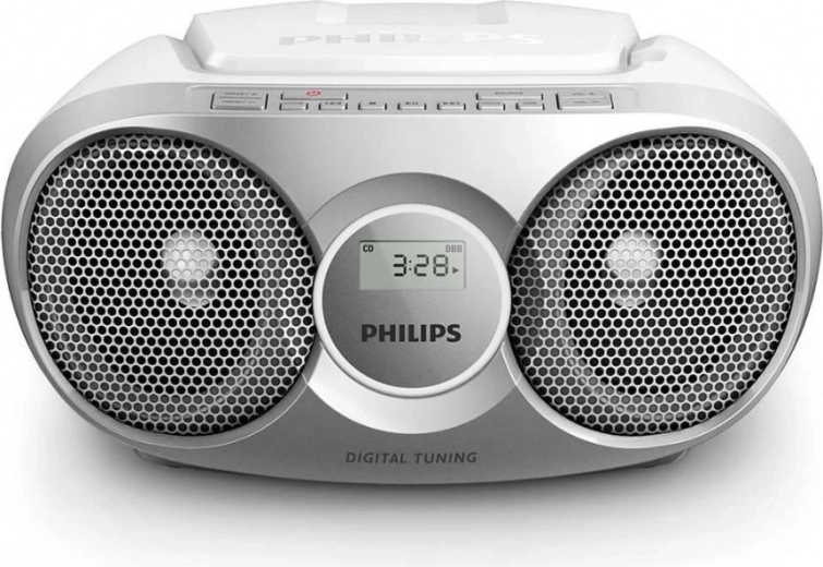Căutați un player fiabil și ușor de transportat? Acest boombox argintiu este alegerea ideală pentru audiția de zi cu zi. Datorită suportului pentru CD, CD‑R și CD‑RW, vă veți bucura de colecția de discuri, iar modurile Shuffle și Repeat aduc varietate în ascultare.