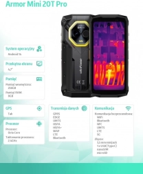 Armor Mini 20T Pro este proiectat pentru condiții extreme. Dispune de protecție IP69K, ceea ce înseamnă că este complet protejat împotriva prafului și chiar rezistă la apă sub presiune ridicată și abur. Telefonul este echipat cu o cameră de termoviziune, care permite detectarea zonelor termice, oferind un nou nivel de funcționalitate pentru utilizări industriale și în aer liber. În plus, designul său robust este completat de un RAM de 8GB și un spațiu de stocare de 256GB, asigurând suficientă performanță pentru sarcini complexe.