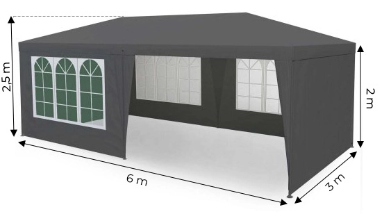 Dimensiunile 3 × 6 × 2,5 m oferă un loc confortabil pentru invitați, zonă de ședere și catering. Ideal pentru nunți, petreceri, garden party sau întâlniri de firmă.