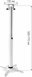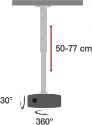 Acest suport de tavan alb pentru proiector îmbină o construcție metalică durabilă cu flexibilitate practică pentru amplasarea perfectă a proiectorului. Datorită stâlpului reglabil 50–77 cm puteți adapta cu ușurință înălțimea proiecției nevoilor dvs., în timp ce plăcuța de montaj universală permite compatibilitatea cu majoritatea proiectoarelor de pe piață.