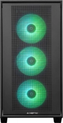 Carcasa CHIEFTEC Hunter 3 este echipată cu un panou lateral din sticlă și un panou frontal perforat pentru o răcire mai bună și un aspect estetic, ideală pentru sisteme de jocuri.