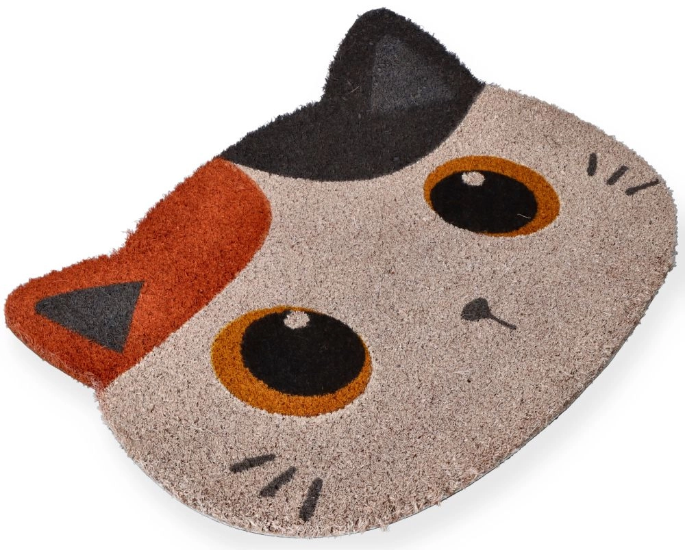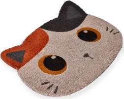 Acest preș de intrare original, cu motiv de cap de pisică, combină funcția practică cu un aspect decorativ. Suprafața textilă, mai aspră, șterge eficient impuritățile și praful de pe tălpi, în timp ce profilul jos nu incomodează deschiderea ușilor.