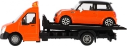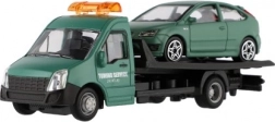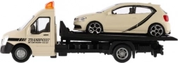 Acest model de camion de tractare cu autoturism aduce în camera copiilor o parte din lumea reală. Proporții precise la scara 1:43, combinația de metal și plastic și variantele cromatice atrăgătoare asigură un aspect plăcut și rezistență la joacă.