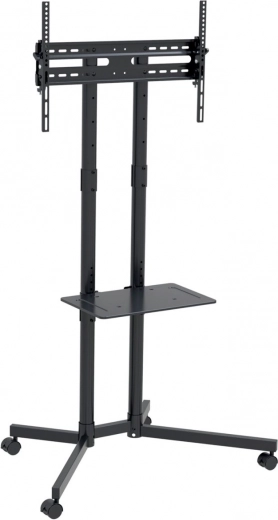 Suportul este compatibil cu televizoare LED, LCD și plasma de la mărci precum Sony, LG, Samsung și altele. Dispune de o poliță ajustabilă pentru instalarea accesoriilor precum playere DVD sau console de jocuri. Suportul este echipat cu roți pentru mutare ușoară. Ideal pentru săli de conferințe, aeroporturi și prezentări publice.