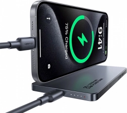 Power bank compactă și ușoară, cu o capacitate de 5000 mAh, oferă încărcare rapidă PD 20 W și încărcare wireless magnetică MagSafe 15 W. Datorită grosimii de doar 9 mm, greutății de 118 g și corpului din aluminiu, este ideală pentru călătorii. Magneții puternici de 13 N mențin telefonul ferm, sistemul de siguranță protejează împotriva supraîncălzirii și supratensiunii, iar funcția 2 în 1 permite încărcarea atât wireless, cât și prin cablu, chiar două dispozitive simultan.