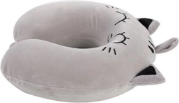 Pernă pentru gât în formă de pisică gri, ideală pentru copii de la 3 ani, oferă confort excepțional în timpul călătoriilor sau al odihnei. Acest suport elegant este conceput pentru a susține optim gâtul și capul.