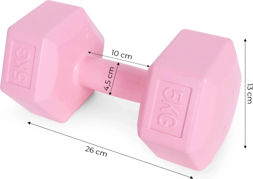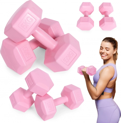 Cu aceste gantere hexagonale roz ModernHome îți întărești cu ușurință brațele, spatele, abdomenul, picioarele și fesierii. Datorită greutății de 2×5 kg sunt potrivite pentru antrenament de forță, exerciții funcționale și programe de recuperare. Capetele hexagonale nu sunt predispuse la rostogolire, fiind stabile și la sprijiniri și mișcări dinamice.
