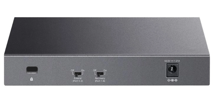 - Mod extins: Posibilitatea transmiterii PoE pe o distanță de până la 250 de metri, ideal pentru suprafețe mari și distribuția sistemelor de camere.