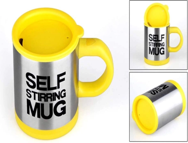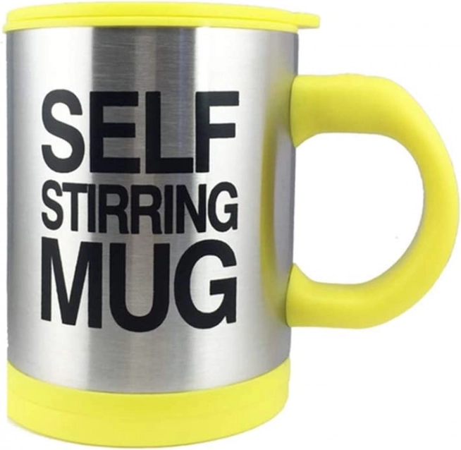 Cană termică cu auto-amestecare, activată prin buton. Menține băutura caldă mai mult timp, ideală pentru călătorii și birou. Capac practic și întreținere ușoară.