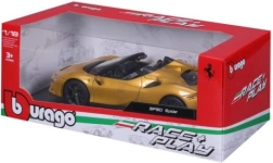 Modelul de mașină Ferrari SF90 Spider la scara 1:18 de la Bburago este cadoul ideal pentru colecționari și fanii mașinilor sportive. Acest model este realizat din metal și plastic de calitate, asigurând durabilitatea și aspectul autentic. Detaliile, cum ar fi roțile negre, acoperișul deschis și interiorul realizat cu precizie, garantează că veți fi entuziasmați de realizarea sa.