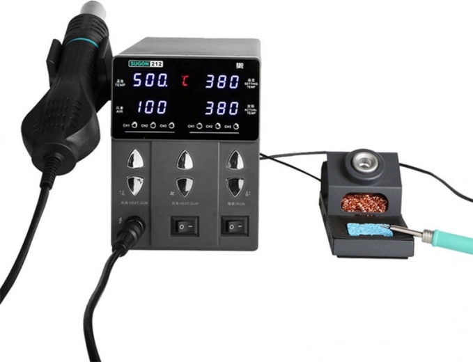 Sugon 212 combină o stație de aer cald și o letco T12, fiind un instrument complet pentru reparații și asamblare electronică. Permite nu doar lipirea precisă, dar și dezlipirea și asamblarea ușoară a componentelor SMD. Trei butoane programabile vă permit să salvați setările optime de temperatură și aer.